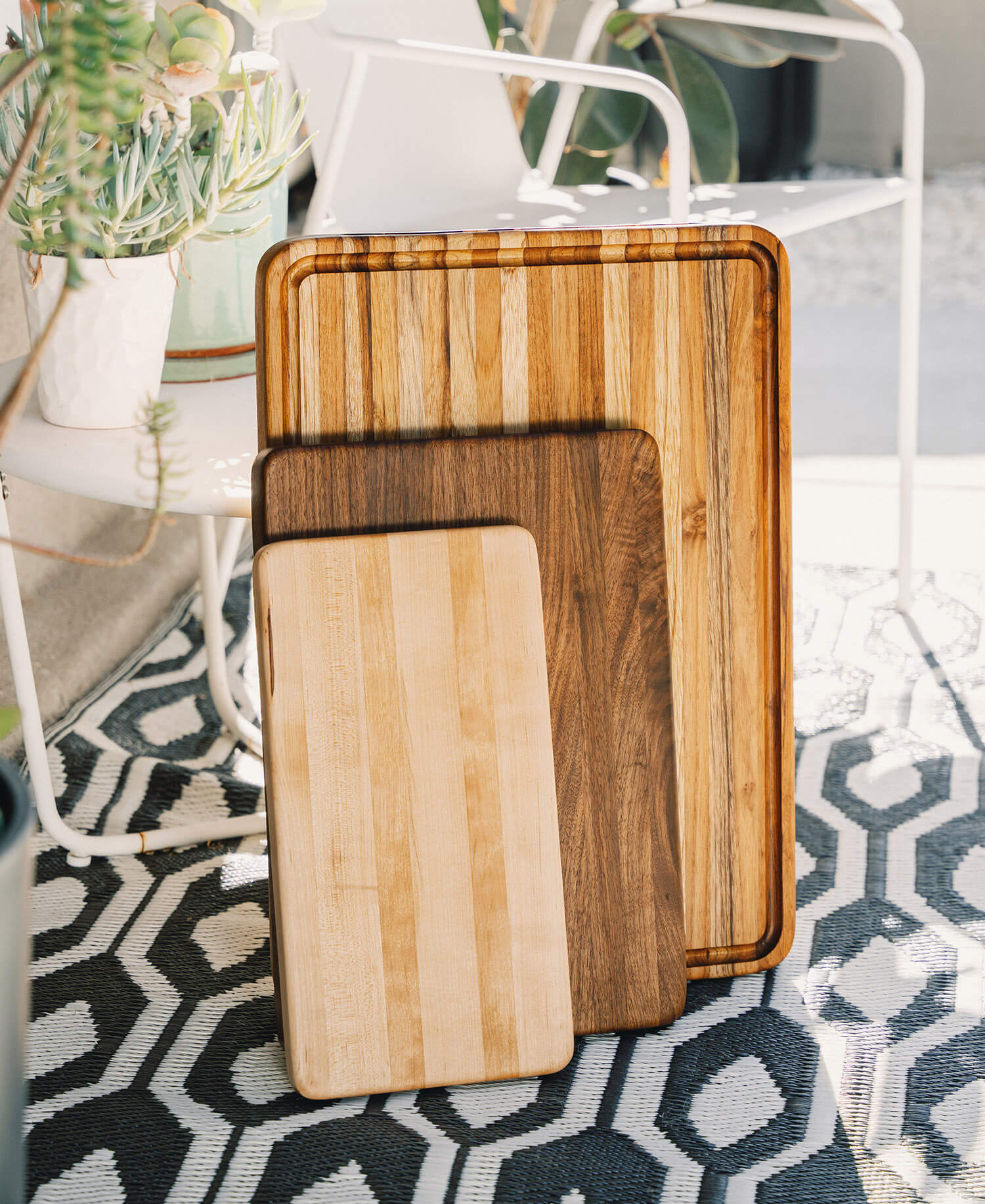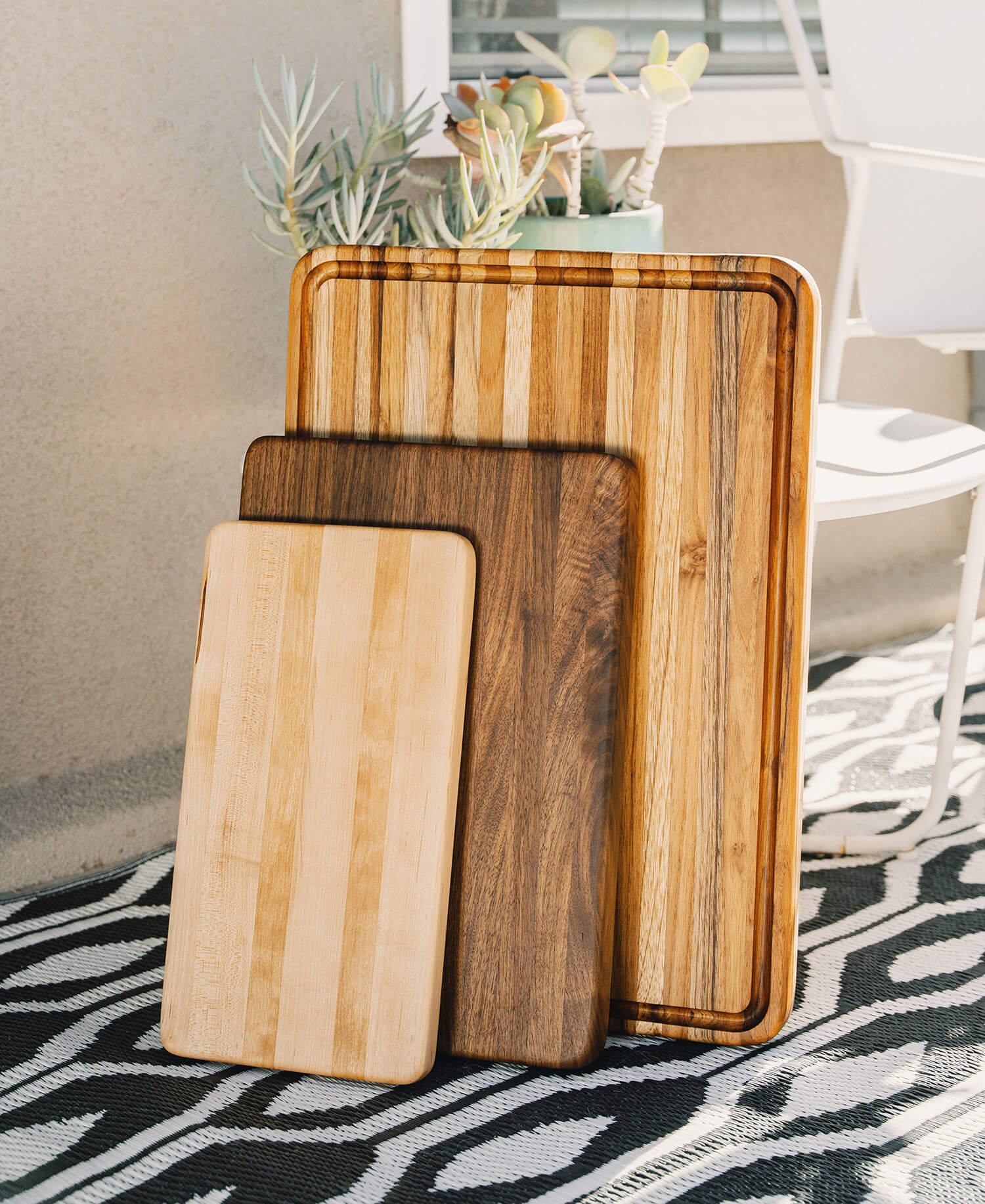 Introducing our flagship cutting board, available in four sizes and three wood types. A must-have for every kitchen, this versatile butcher block cutting and serving board is ideal for food preparation, cooking, and entertaining. It excels as a daily cutting board for slicing and dicing, and also makes a stunning presentation board for cheese and more. Crafted to be a lasting heirloom, this beautiful board will serve you well for years to come with proper care.